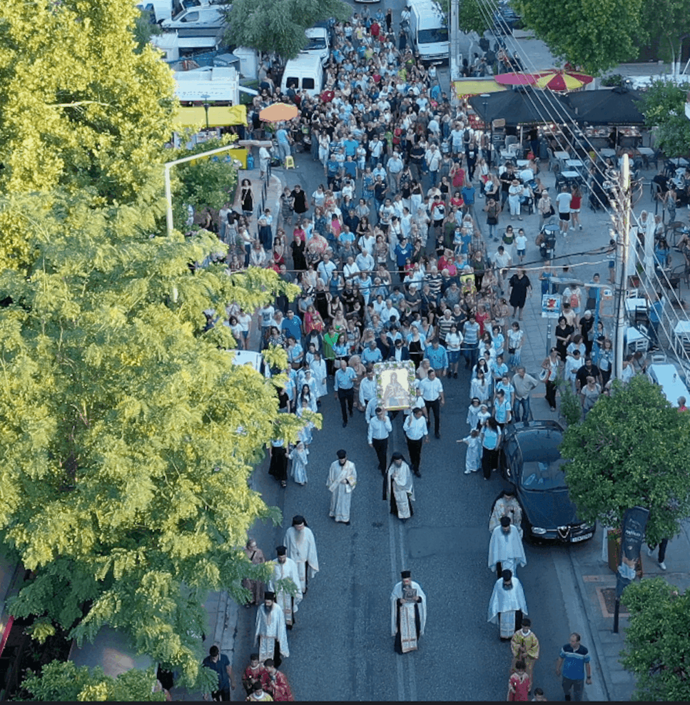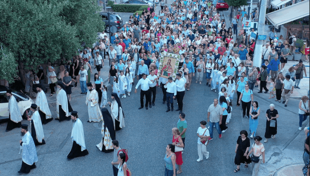Το απόγευμα πραγματοποιήθηκε η καθιερωμένη λιτανεία της εικόνας, μέσα σε κλίμα εορταστικό και κατάνυξης, υπό τις ψαλμωδίες και τους ήχους της Φιλαρμονικής Ορχήστρας της Αστυνομίας, που κάθε χρόνο συνοδεύει την εικόνα, καθώς και πλήθος κόσμου κάθε ηλικίας, ιερέων και επισήμων.